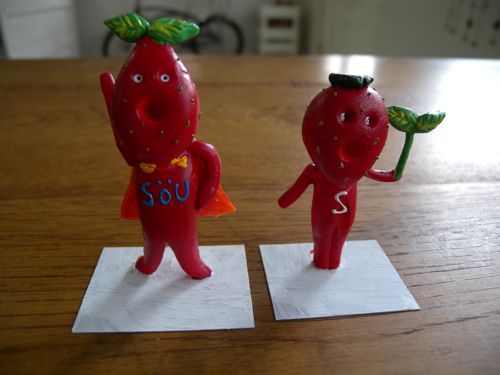 ※左から「バナナン」「サガホノカ」「ベニホッペ」サガホノカがスクラップで作った「C1P5」「R1D5」