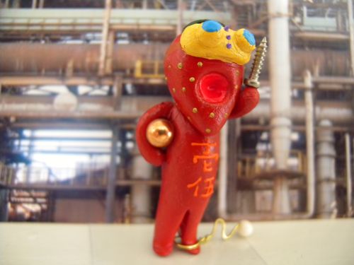 ※ジャンクパーツ屋で奴隷として働くサガホノカ。足には外そうとすると爆発する爆弾が付けられている。これはキゥイザハットの頭のお花から電波で操作管理されている。