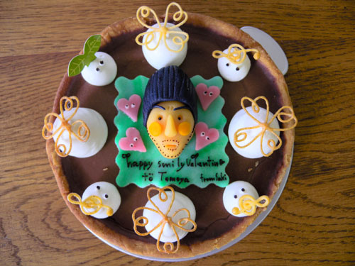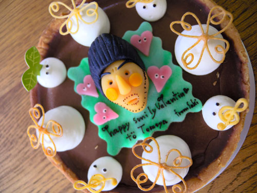 バレンタイン用に「チョコレートタルト」のベースをやります。タルト生地の器の中に生チョコが入ってると想像してもらえれば味は想像つくかと思います!美味しいです☆サイズは2人で食べますから12cmのワンサイズで彼氏の顔を作ってコミコミ¥2500です。ご注文お待ちしております♪