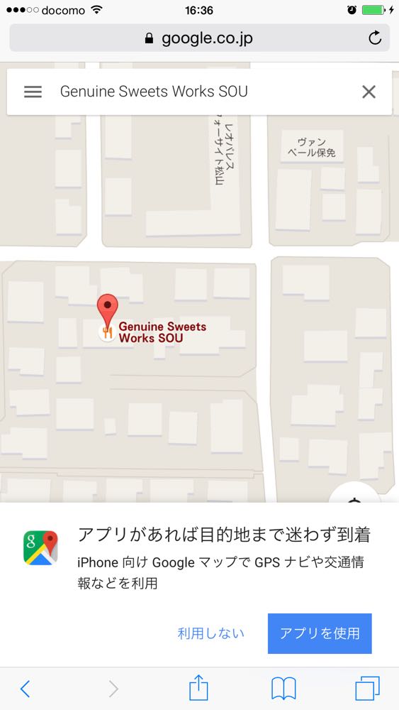 ※スマートフォンからGoogle Mapsで「GenuineSweetsWorks SOU」と検索していただくとかなりわかりやすい地図が表示されます。そのままだとわかりにくい場合は地図上を指で拡大するとより細かく表示されます。自動車のナビですとだいたいの場所しか表示されませんので注意してください。